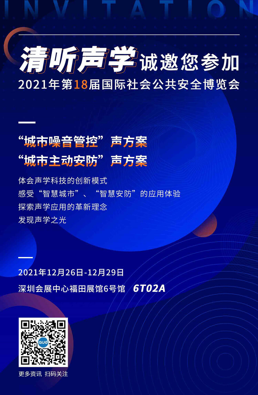 清聽聲學誠邀您的蒞臨,一起體驗聲學科技的創新模式,感受“智慧城市”、“智慧安防”的應用體驗,探索聲學應用的革新理念,發現聲學之光。