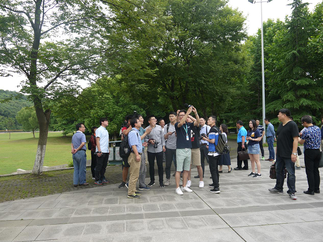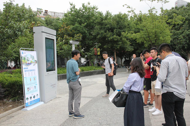 下午14:00,考察團一行先來到馨泰花園和新區(qū)公園兩個示范點調研考察。馨泰花園位社區(qū)活動中心位于社區(qū)內部,是一個典型的廣場舞社區(qū)活動場地,新區(qū)公園是蘇州高新區(qū)一開放式公園廣場,公園內部同時有多只廣場舞愛好者隊伍開展活動,備受群眾喜愛。清聽聲學技術總監(jiān)、省“雙創(chuàng)”人才匡正向大家詳細介紹了智慧廣場舞系統(tǒng)的技術原理及效果。