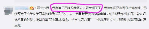 有網(wǎng)友表示:看完節(jié)目,小朋友點名要去看大瓶!