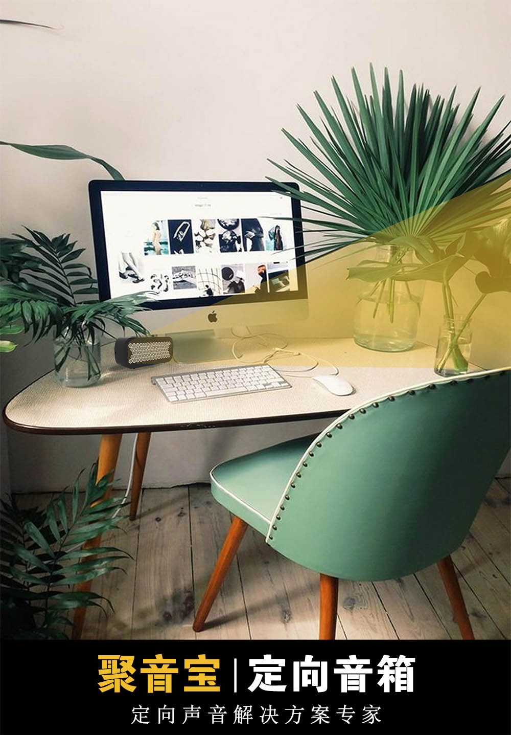 聚音寶是國內首個產業化的“定向音箱”,突破性的實現了“讓聲音,像手電筒的光一樣,定向傳播”的技術,打破人們對聲音的一貫認知, 聚音寶”定向傳音“的特性巧妙的把聲音控制在局部范圍內,將獨立的聲音傳播給目標區域和人群,范圍之外的人群則不受干擾,帶給用戶清晰、獨特的視聽體驗。