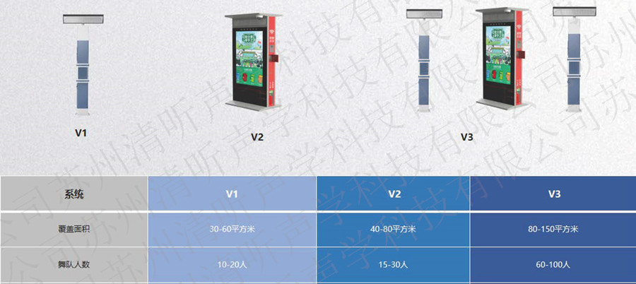 智慧廣場舞系統(tǒng)有三個型號:V1、V2、V3,每個型號覆蓋的面積和人數(shù)是不一樣多的,小區(qū)物業(yè)工作人員可以統(tǒng)計下常規(guī)跳舞團隊有幾個,每個團隊有多少人,這樣根據(jù)實際情況來購買相應(yīng)的設(shè)備安裝到固定的區(qū)域給大爺大媽來跳舞就行。
