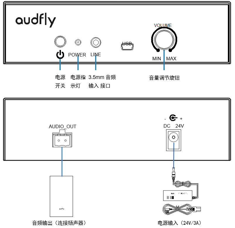 注:設備電源打開后5秒,設備完成開機,可進行音頻播放。