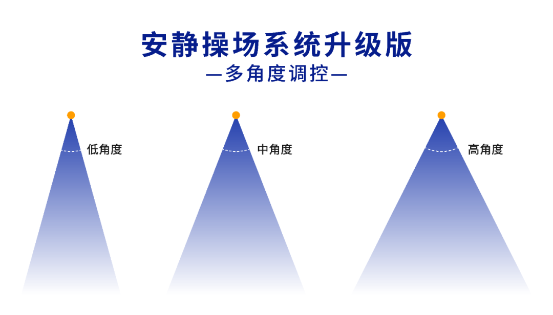 為響應2023年即將實施的新體育法,滿足校園多元化、多層次的體育活動分區域、同時段進行。安靜操場系統升級版可根據體育教學的不同需要,對同一操場不同區域進行多角度語音覆蓋,達到不同團體、不同類別體育活動現場互不干擾的效果,推動青少年體育活動高效進行,助力學校體育教學高質量發展。