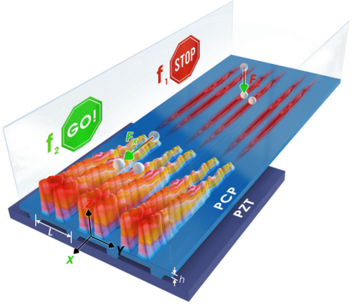通過切換頻率以改變聲子晶片的諧振模式以及通過在聲子晶片上設計圖案以構建路線,實現(xiàn)了沿通道中預定路徑的粒子和細胞的任意走走停停運動,即捕獲和傳輸。通過在微流控設備中使用聲子晶體或超材料仔細設計和設計聲場,可以在生物醫(yī)學應用中以可調和多功能的方式對各種材料、粒子、細胞和生物體進行聲學操作。在各種應用中,使用可實時調諧和調整的聲輻射力對粒子和細胞進行非接觸式操縱已變得非常重要。