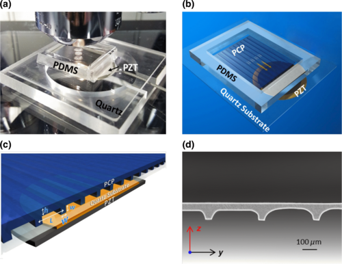 目前,如何用一種簡單、靈活、低成本、一次性的方法在微小的微通道中實現(xiàn)動態(tài)操縱仍然是一個挑戰(zhàn)。中國科學院深圳高級技術研究所(SIAT)的鄭海榮教授領導的一個研究小組,通過在微觀尺度上集成聲流體學、物理學和聲子晶體的制造,解決了對微通道中粒子和細胞的全面、動態(tài)操縱的挑戰(zhàn)。在本研究中,位于微通道中的聲子晶片(PCP)由化學刻蝕而成,產生可調諧的時變聲場,產生可實時調節(jié)的各向同性可逆聲波輻射力。